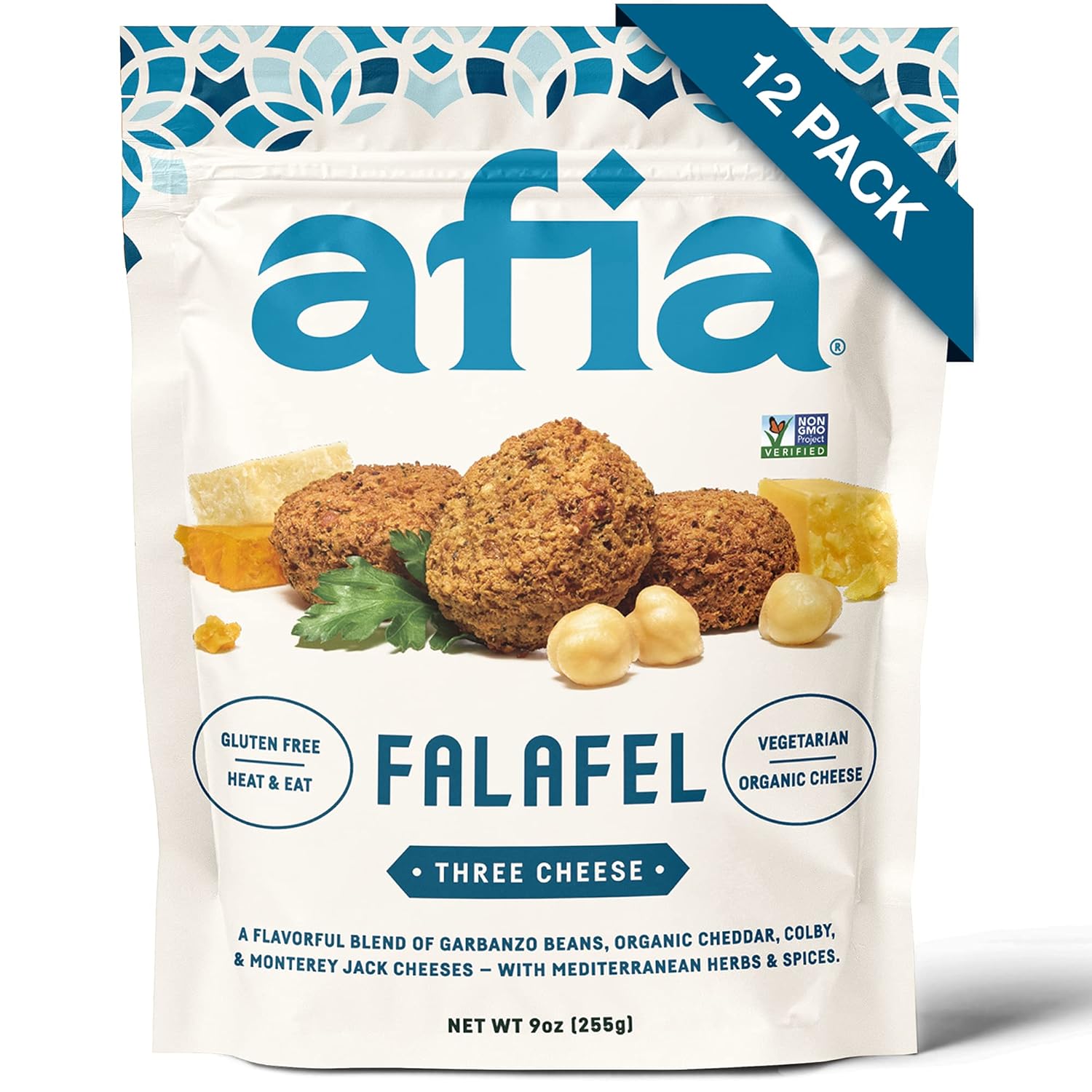 Amazon Com Afia Frozen Falafel Three Cheese 12 Pack Gluten Free Plant Based Vegetarian Made With A Mix Of Chickpeas And Mediterranean Spices Meat Alternative Great With Hummus And Pita Bread